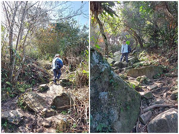 我們繼續往梅峰古道走,這一段步道上的石板刻了很多詩句
