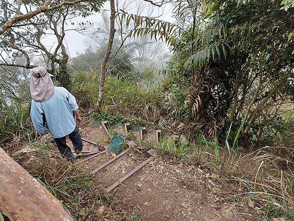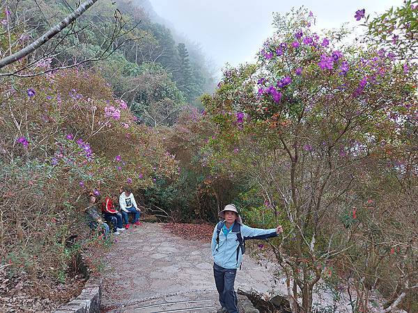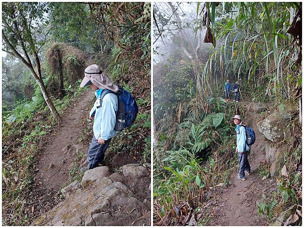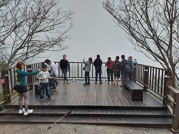 12:25 回到觀景平台,霧更濃了!本來是想走觀音步道下山,但聽山友說比較陡,所以我們決定直行再走梅峰古道下山。