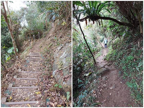 11:29 過了觀景台後約10公尺,來到觀音步道叉路,旁邊有長條椅,剛好沒啥陽光,老公等不及要先吃午餐,才繼續往竹子尖山前行。