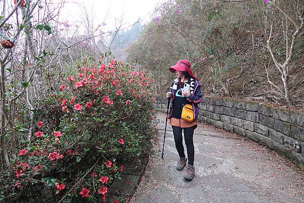 途經梅峰古道山口時,看到步道上面一片紅點點,很想改從梅峰古道上,不過還是先爭取遊客較少的上午時段先走伍龍步道,回程再從梅峰古道下。