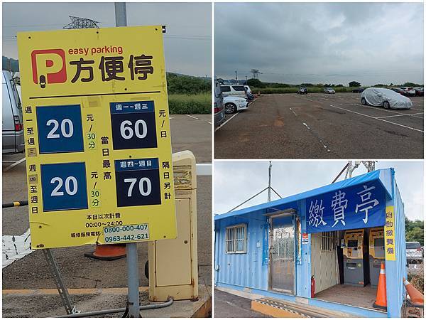 早上09:50的航班,我們7:00出發,到方便停停車場(台中國際機場1場)也才8:15左右。這家有兩個停車場,1場是露天無遮棚,週一~三60元,週五~週日70元(4天270元);2場則是有鐵皮雨遮,但不分平假日1天就要120元(4天480元),價差很大,所以我們當然選露天的囉!