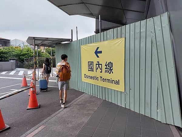 航廈整修中,原本和國內線可連通,改從外面走過去。