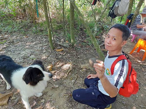跟主人來爬山的邊境牧羊犬超可愛,老公手上拿的球是主人帶上來快被牠咬爛的網球。老公作勢要丟球,又沒丟出去,玩弄了牠,笑死我了!