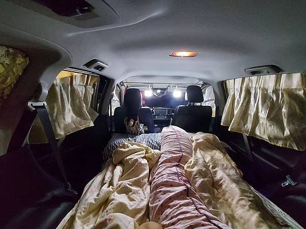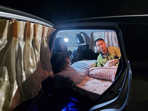 還好車內只開一點車縫很舒服,原本還帶了電風扇根本無用武之處!我們只開一點車窗縫,連蚊帳也不用掛,空間更舒服!