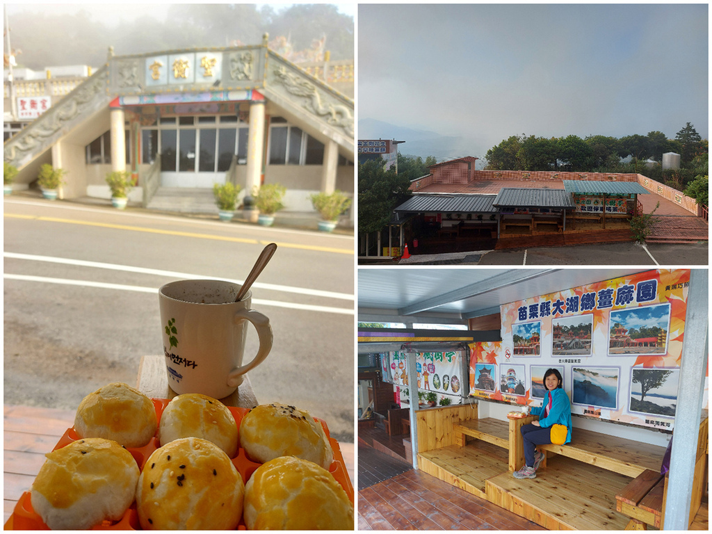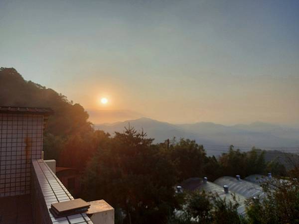 我帶了自己做的蛋黃酥,泡了穀粉,坐在對面觀景台的涼亭享用簡單早餐!