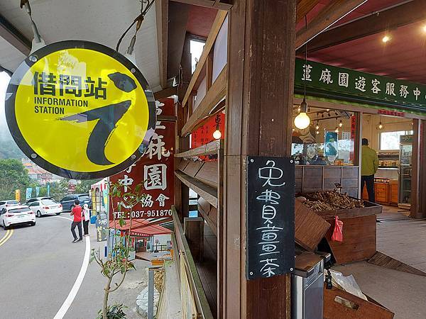 停車場旁的遊客中心有販售農特產品,還有免費薑茶喔!