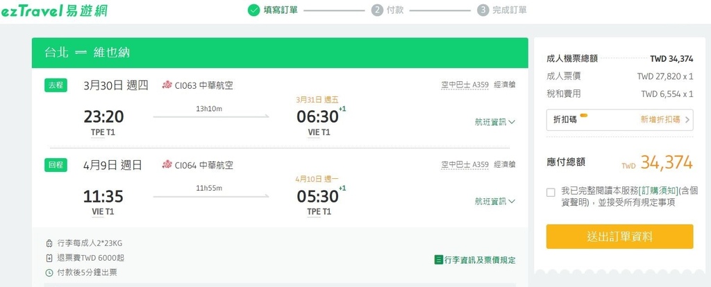 就這樣,不到12小時的時間,2022年10月19日我就訂了清明連假華航直飛維也納的機票!