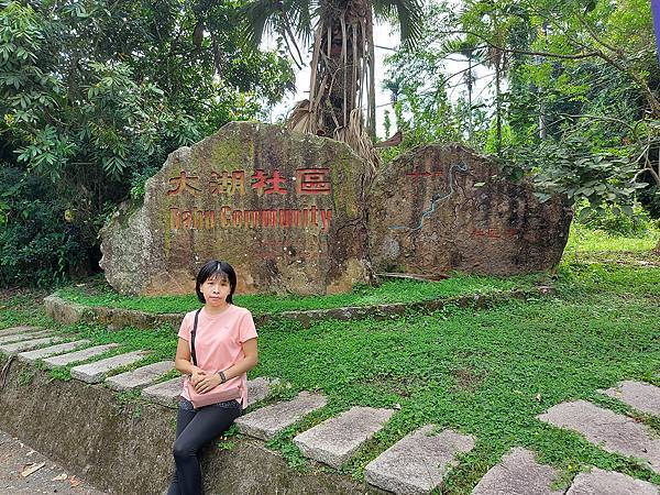 從鳳凰瀑布步道離開後,我們延著大華公路回程要去半天岩紫雲寺,導航時看到地圖上有個「半天岩觀景台」,想說順路去看看。就在「半天岩觀景台」前的這個「大湖社區」石碑前的路邊停車。