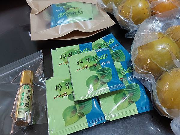 我們拿贈品兌換券換了柿葉茶和楓香苗木!