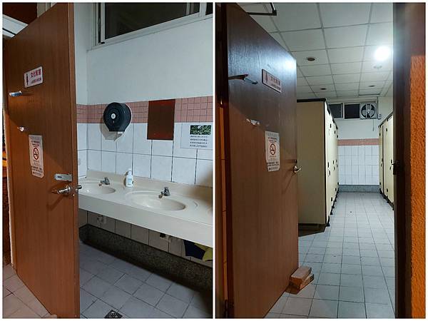 洗手間也是靠停車場內側,廁所的燈整夜都是亮的。