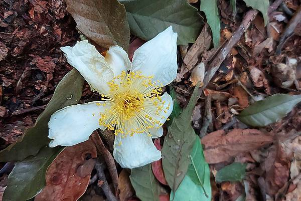 路上看到很多這種落花,正好奇是它的花名?就看到朋友臉書分屬,原來是「大頭茶」花!