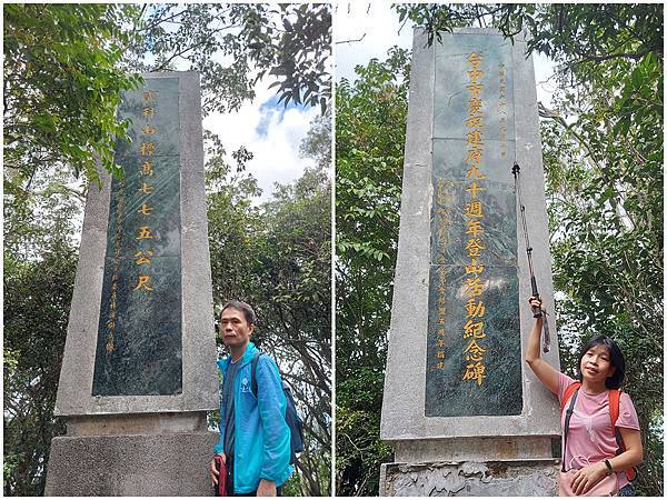 07:36 二嵙山,海拔775m,前台中市第二高峰,立有民國68年慶祝台中市建府90週年登山活動紀念碑。