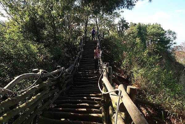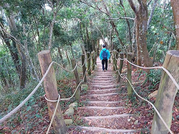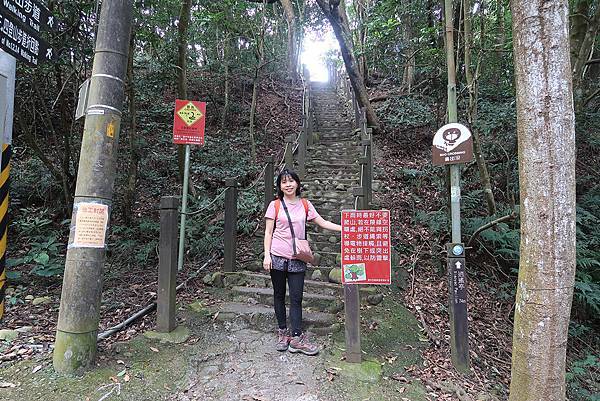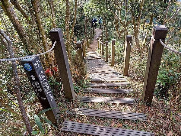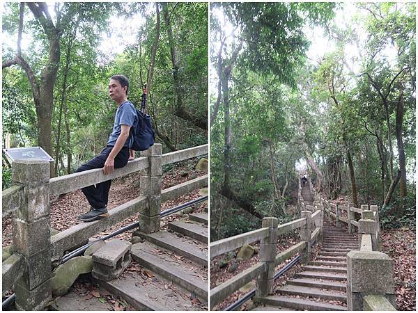 原本還有一段長長的階梯要走,我忽然看到旁邊有可翻越圍籬的石階,想必可抄近路回到登山口!