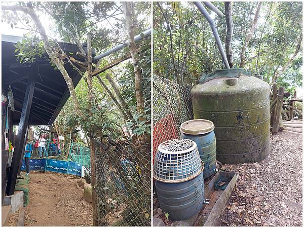 頭嵙亭的環保設施,接取雨水引到大水桶儲存再利用。