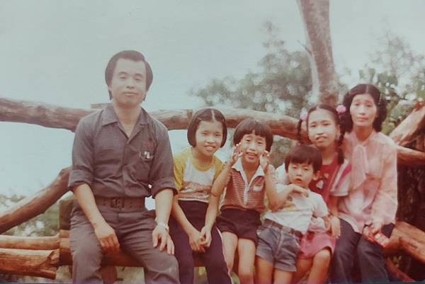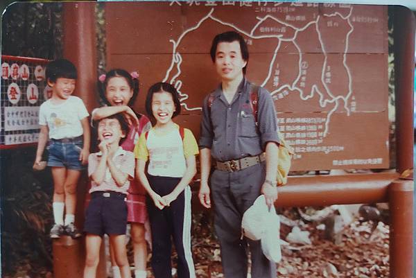 後來又翻出40年前的照片,71.11.07 爸爸又帶我們全家去一次,左邊有明顯的「頭嵙山登山口」字樣。爸爸還穿著電信員工制服帶我們爬頭嵙山!