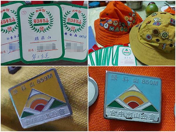 在兩頂帽子的中間夾了參加登山活動發的識別證,正面頭嵙山,背面則記載了活動日期:71.6.13 ~~真的超過40年了!