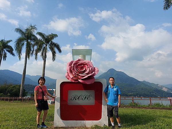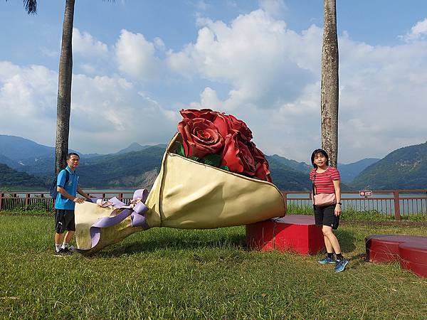 戶外曾文水庫湖畔草原也設置嵌上玫瑰花的大型香水瓶!