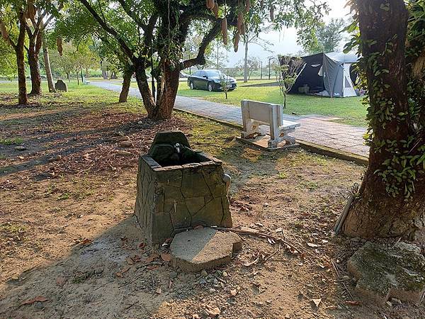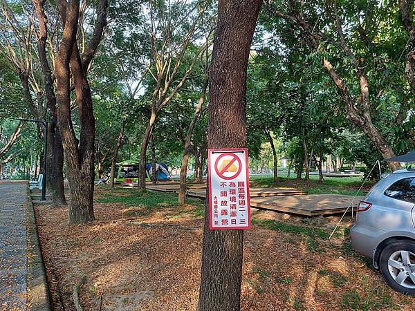 「大埔湖濱公園」有免費露營區,也不用訂位喔!從情人公園也可以走到這裡,我們要車泊,所以直接開車進園區囉!