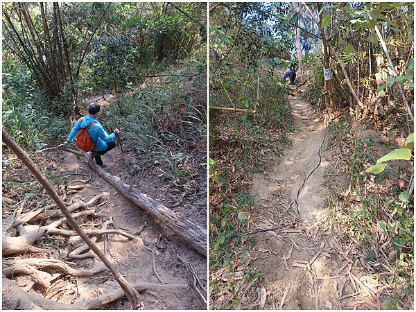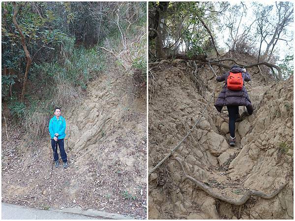 後來在上面那個「高速尾休息站」後面發現有個幾近垂直的山徑,要拉繩上去!