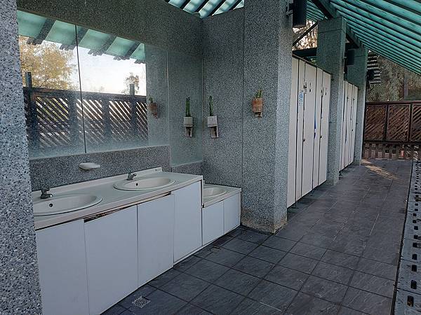 據說雲林縣政府有規劃為露營區,但還未正式公開營運,所以公廁裡面還有淋浴間,但看起來每個淋浴間熱水管都是封住的,只有冷水管,應該沒熱水就是了。不過冬天根本不可能在此洗澡,夏天也不可能來此車泊,若只是要沖個涼應該是可以的。