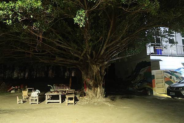 走回停車場後再去口湖街上吃晚餐,再回到停車場後天已全黑了 ,我們才把車開到公廁前的空地停放。
