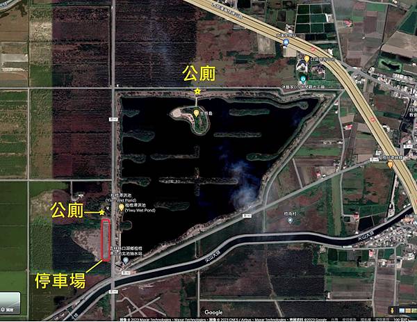 Google導航「雲林口湖椬梧滯洪池」,會先到下圖左下那個位置