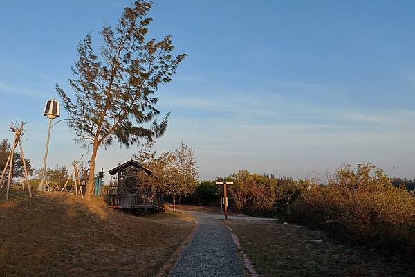 日落之後光線還滿亮的,生態島有步道可以環島一圈,不過我們要去用餐了,走半圈就原路折返了。