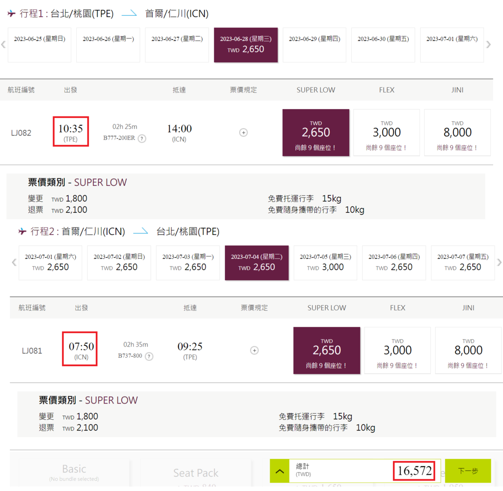 回程也只剩零星日期,但可以湊出不算太短、也不會太長的7天組合!