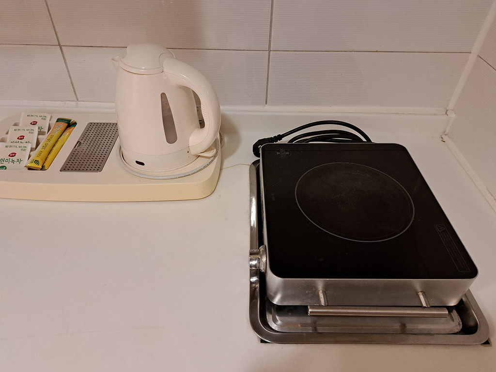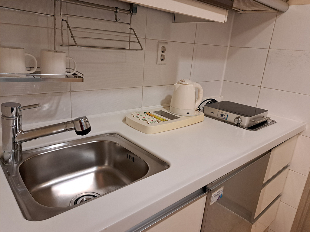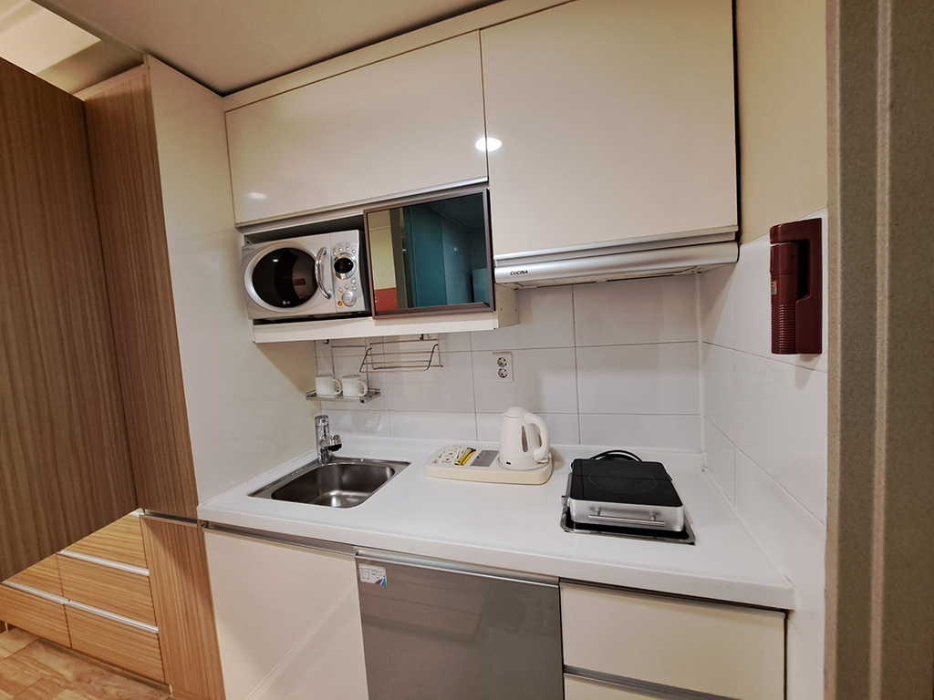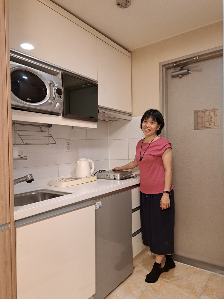 我最喜歡就是這個小廚房了!雖然說來韓國就是要享用美食,哪需要自己煮呀!但因為都一定要點2人份,我們母女倆常常吃不完,有廚房我們就可以打包回來加熱,不用硬撐也不怕浪費掉啦!