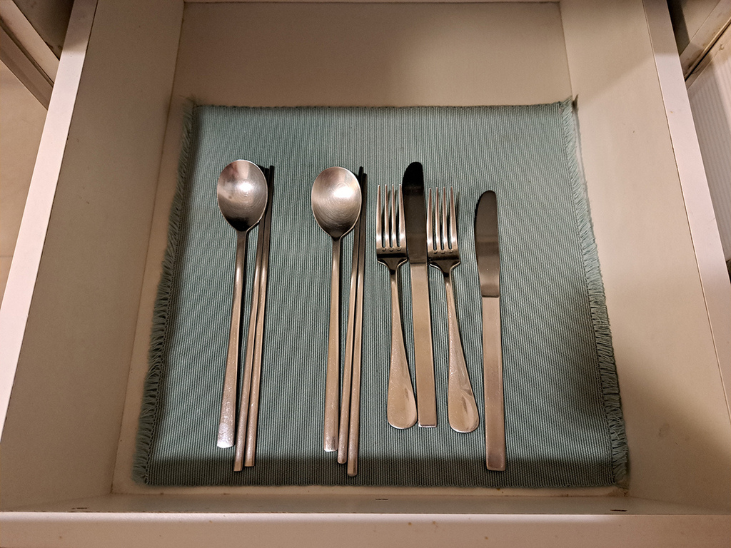 湯匙叉子筷子都有,但沒有刀子!還好我有自己帶折疊刀,不然還真不知怎麼切水梨!