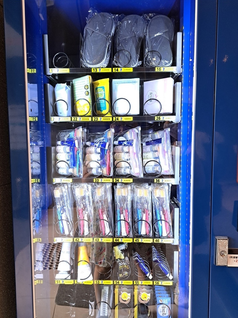 房間內有重複使用的拖鞋、毛巾、浴巾和洗髮精、沐浴乳,其他盥洗設備都要自備喔!若沒帶可以在這刷卡購買。