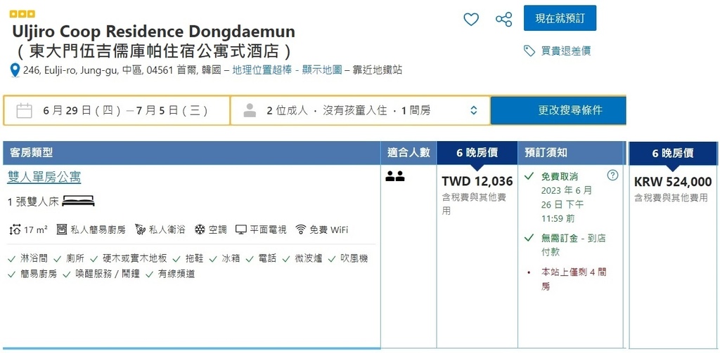 不過同時Booking的價格卻高達524,000韓元,足足貴了3千多呀!