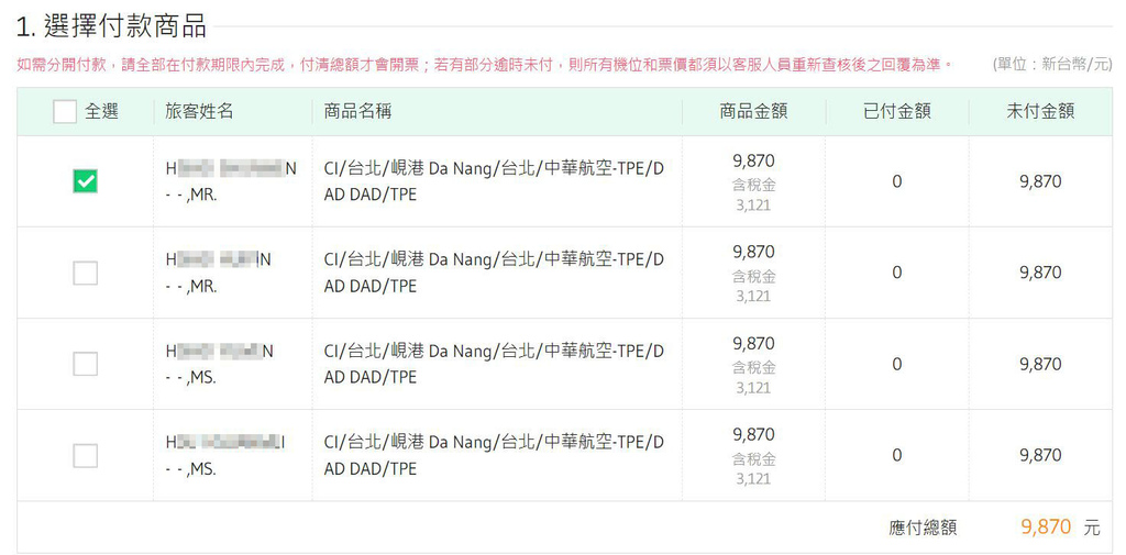 因為我電腦剛好故障送修,原本已經用易遊網App訂購了,要付款時才知道App沒有分開刷卡的功能,雖然進不了機場貴賓室,但覺得還是分開刷多了一些旅行不便險保障(全家上限2萬,但若分開刷是每人1萬),也就改用電腦版重新訂購了,這樣可以同一筆訂單不用拆單!(還好沒有用折扣碼,不然折扣碼是不會退還的)