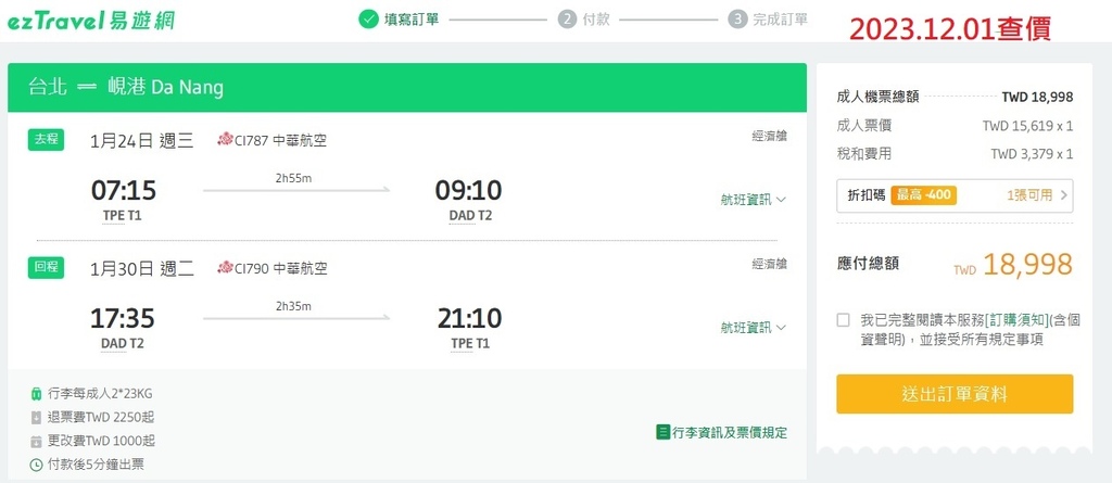 2023.08.14才看到布萊恩N分享越南開放電子簽的訊息,4天後我就訂好寒假飛峴港的機票了!!