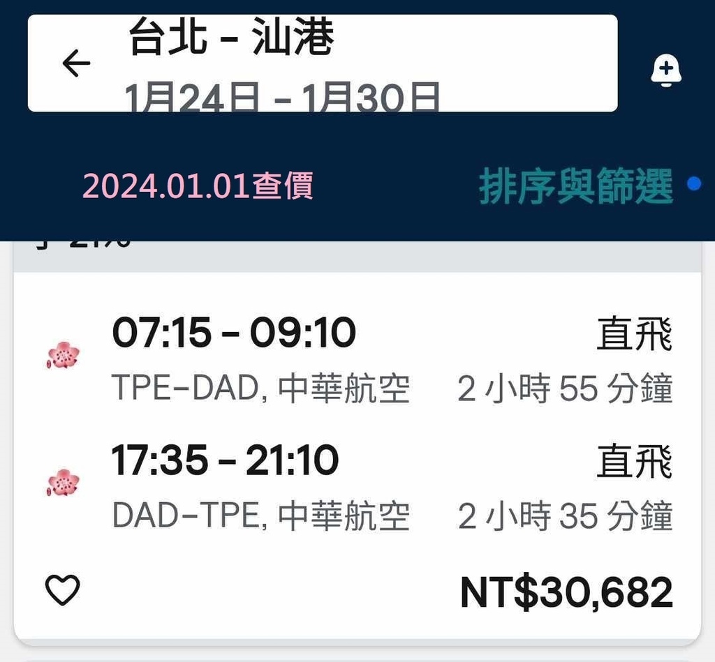 元旦那天在Skyscanner看到我們的華航航班竟然要價3萬!這真的是1個人的價格!嚇死了!