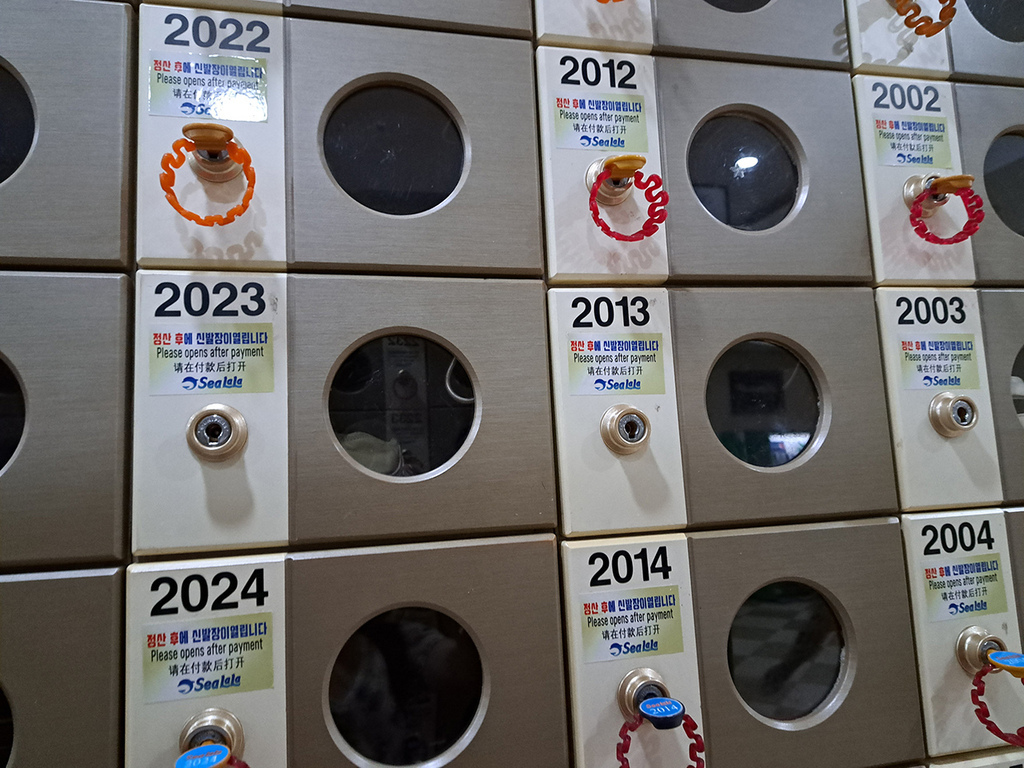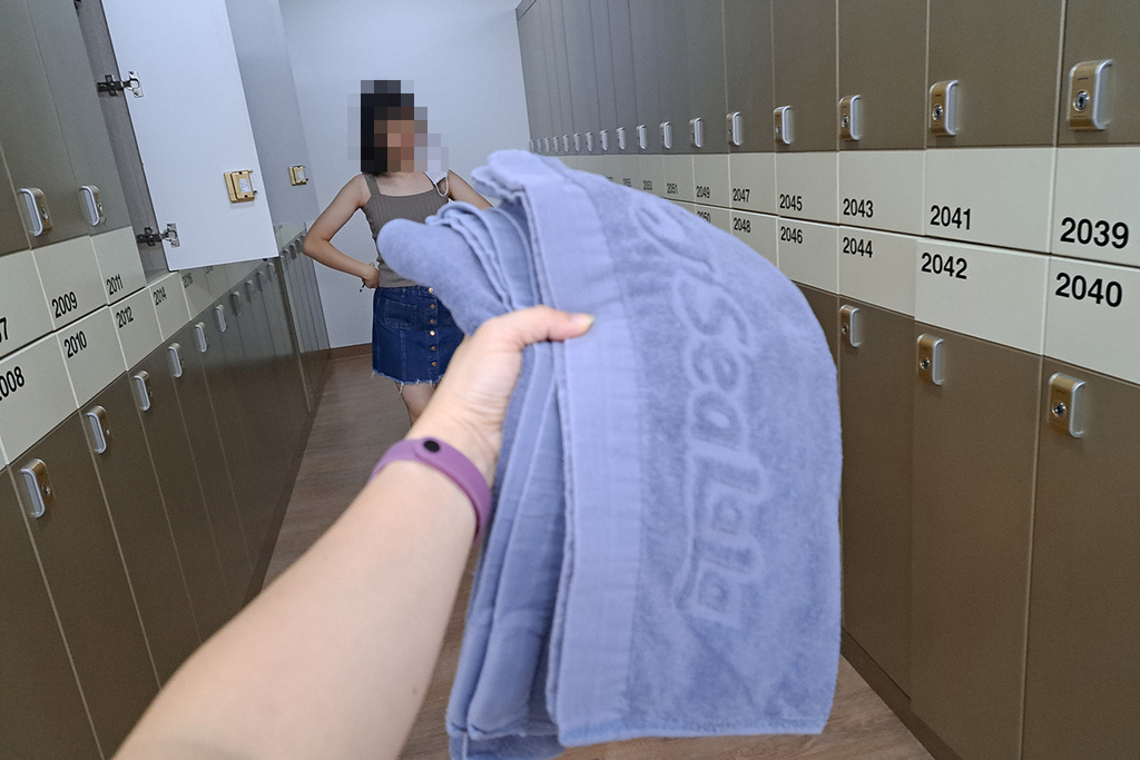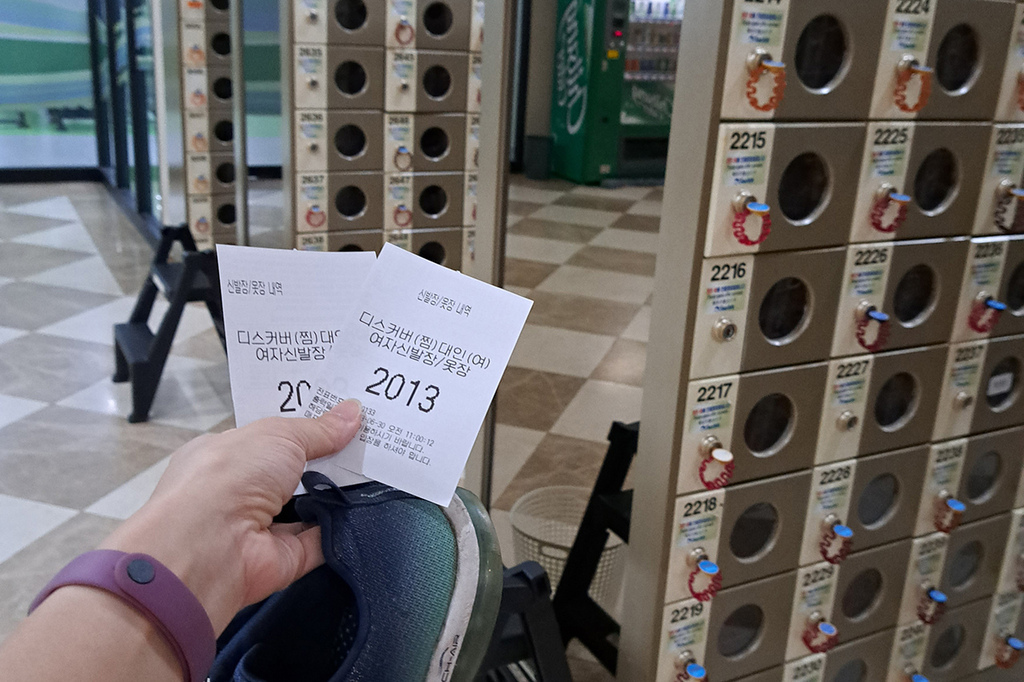 更衣室置物櫃的號碼和鞋櫃是一樣。因為在這裡就要把衣物脫光放在置物櫃,所以這裡其實已經不能拍照了,但一大早剛好沒人,我也不知道這裡不能拍照,想說是置物櫃而已,才會拍了這張照片。