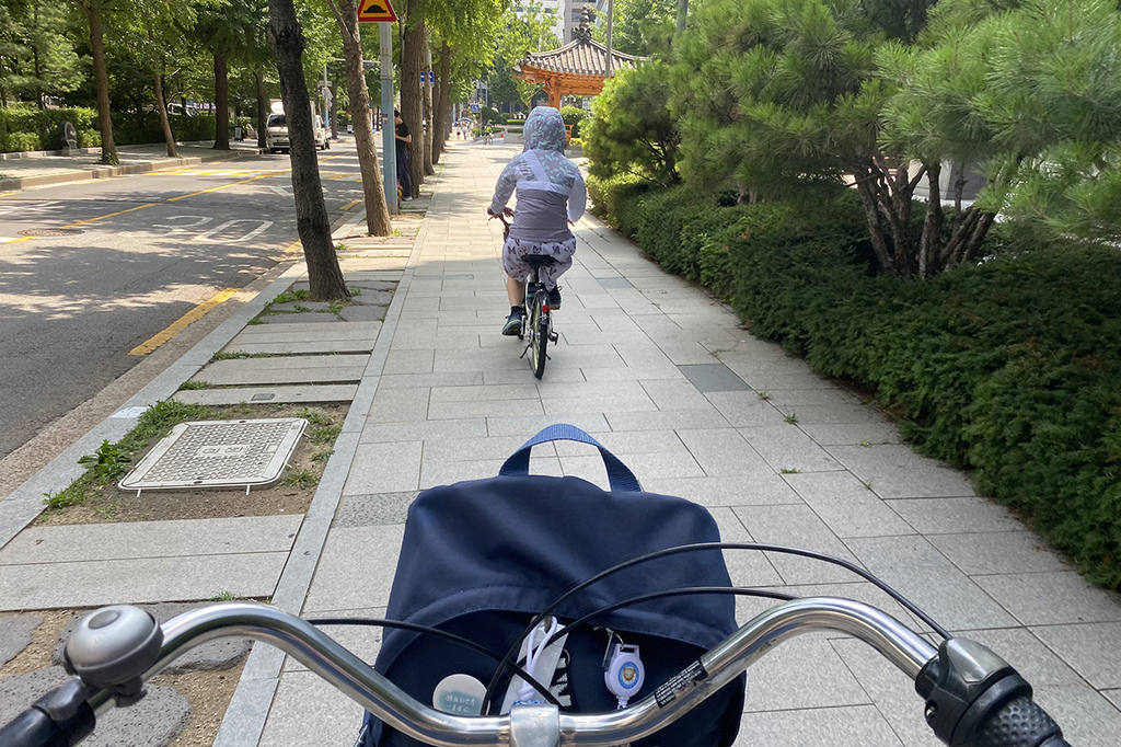 至少花了20分鐘才搞定!但騎不到10分鐘,後面也覺得很麻煩,就沒再騎了!(等於這樣就花了1萬韓元,真的很可惜~)