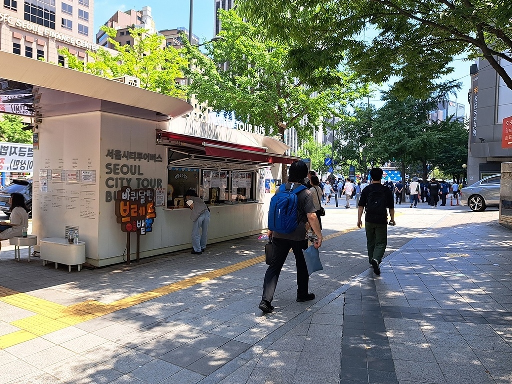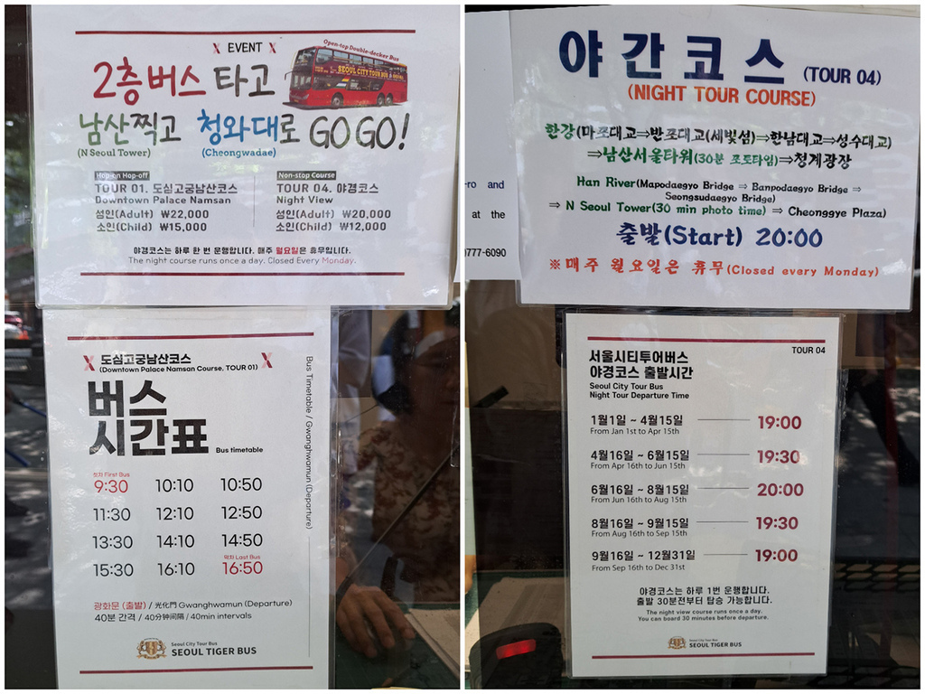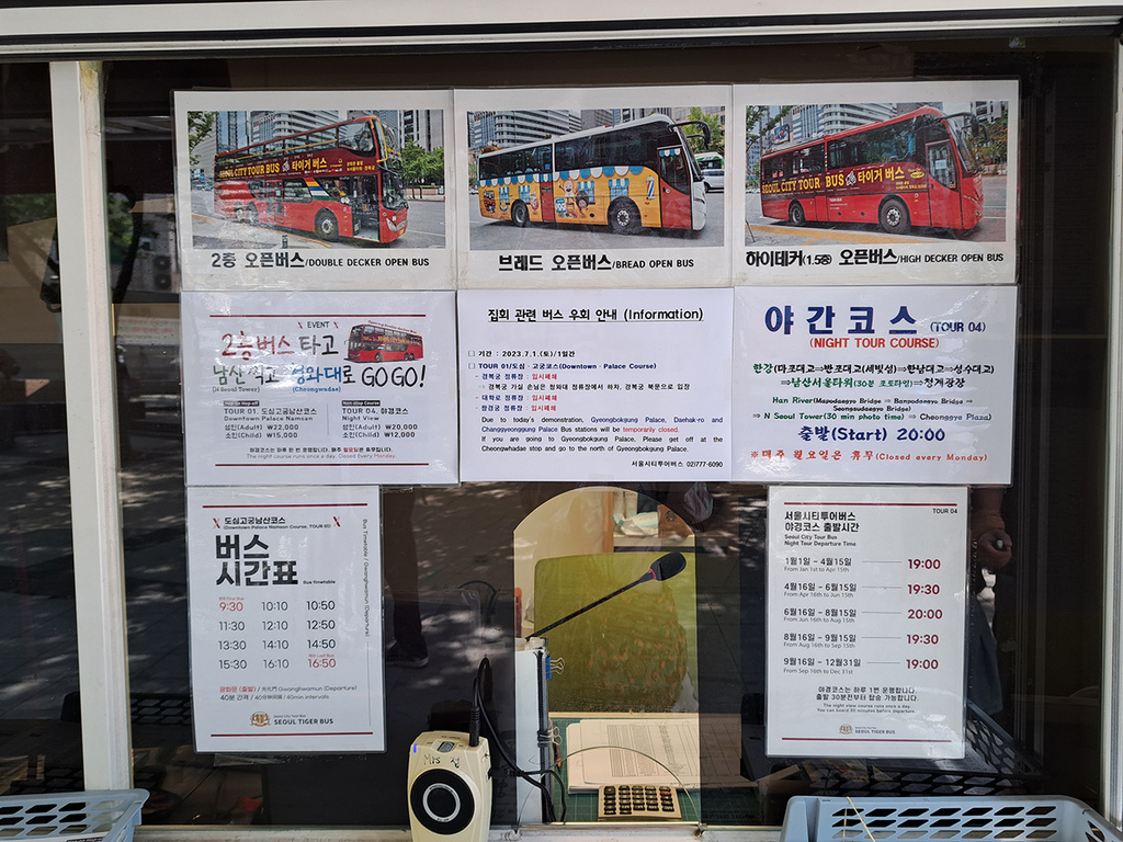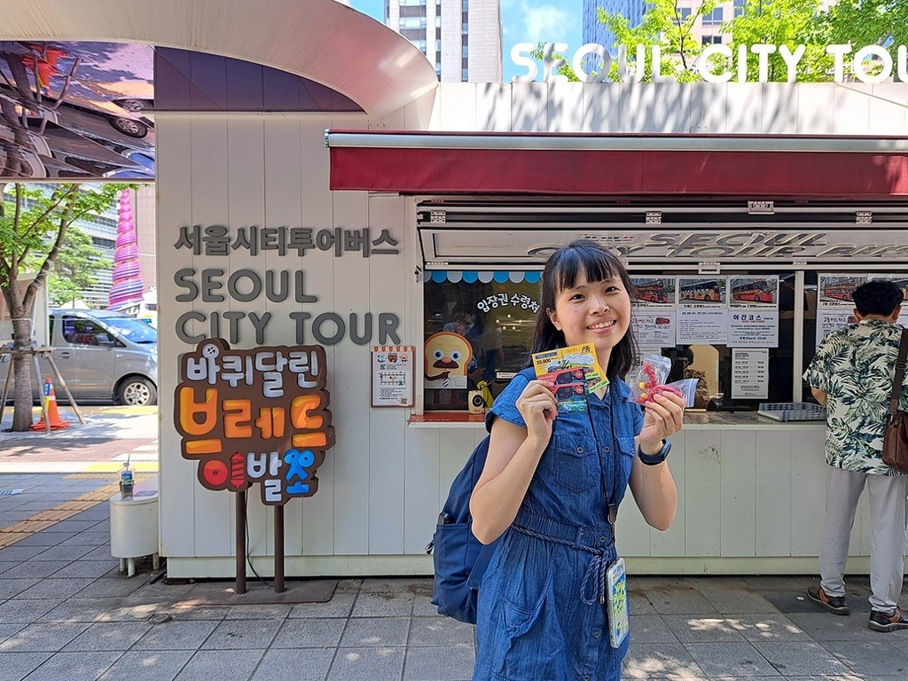 官網的售票處寫:「光化門東和免稅店」,所以我以為是在免稅店裡面,還跑到大樓裡面去問,結果是在大樓外面的售票亭,Google地圖請搜尋Seoul City Tour Bus,而不是「光化門東和免稅店」。