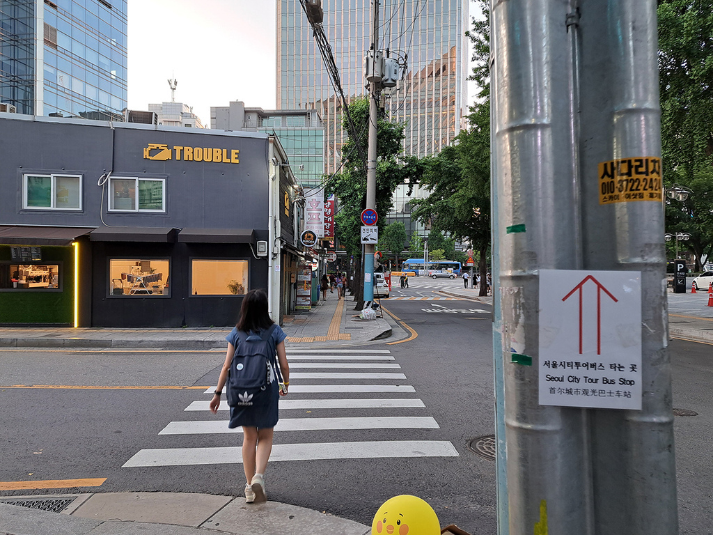 換好票我們就搭公車到弘大午餐,還有到訪Coconut Box,光化門前的這個路口超大、紅綠燈等超久,我用Naver搜尋公車路線,結果眼睜睜看著它從我們面前駛過....。下一班最近的公車又換到另一個站牌,光在這路口就來回走了好幾趟,還是日正當中的豔陽下,真懷疑搭地鐵轉乘會不會比較快一點?