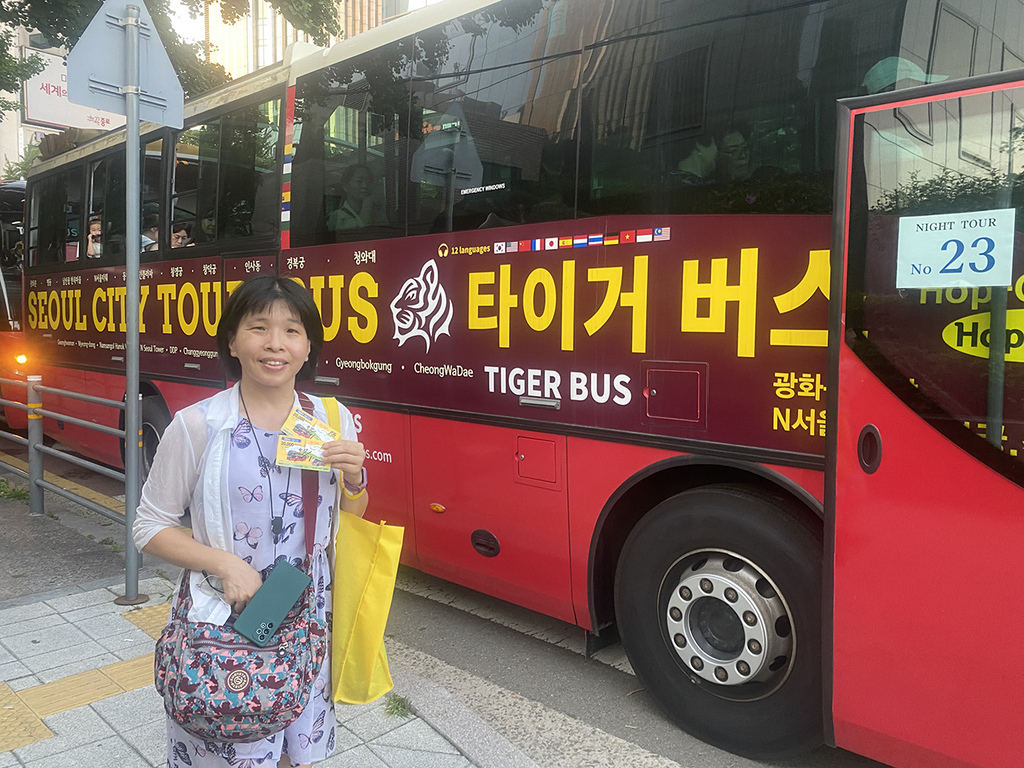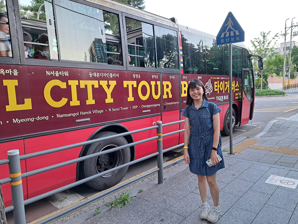 匆忙間忘了在首爾塔拍一張我們搭乘的觀光巴士,舊地重遊翻2011年的照片,剛好有一張女兒跟Seoul City Tour Bus的合影耶!那時我們沒有搭,是等公車時看到拍的,一晃12年後我們才來搭乘!