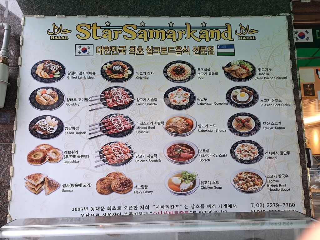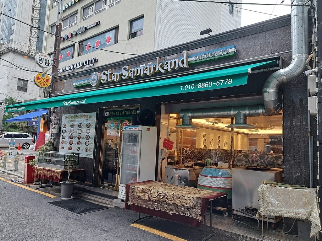 這家烏茲別克小吃Samarkand City就在我們住的乙支路高爺商業公寓飯店旁的小巷口,每天出門搭地鐵都會經過。