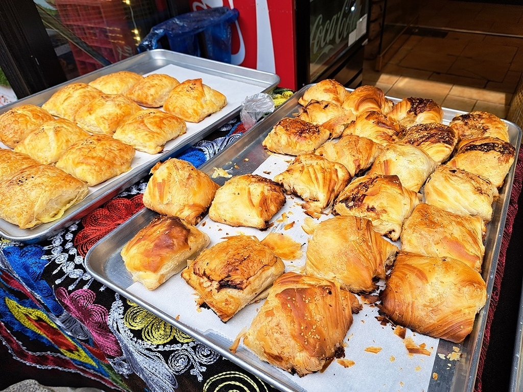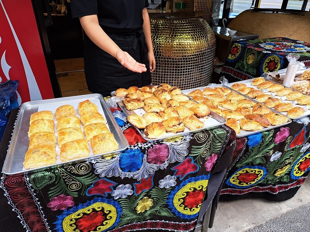 Google地圖上Samarkand City是麵包西點店,第4天的早餐,我們比較晚出門,看到餡餅剛出爐,我們便買來當早餐吃。