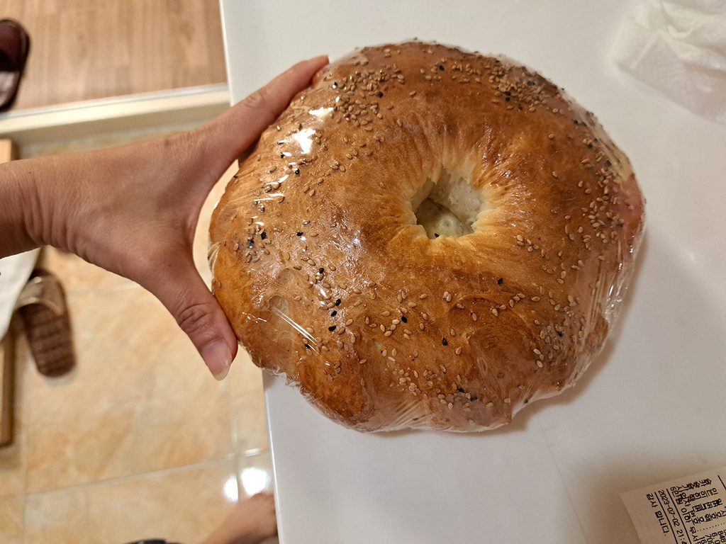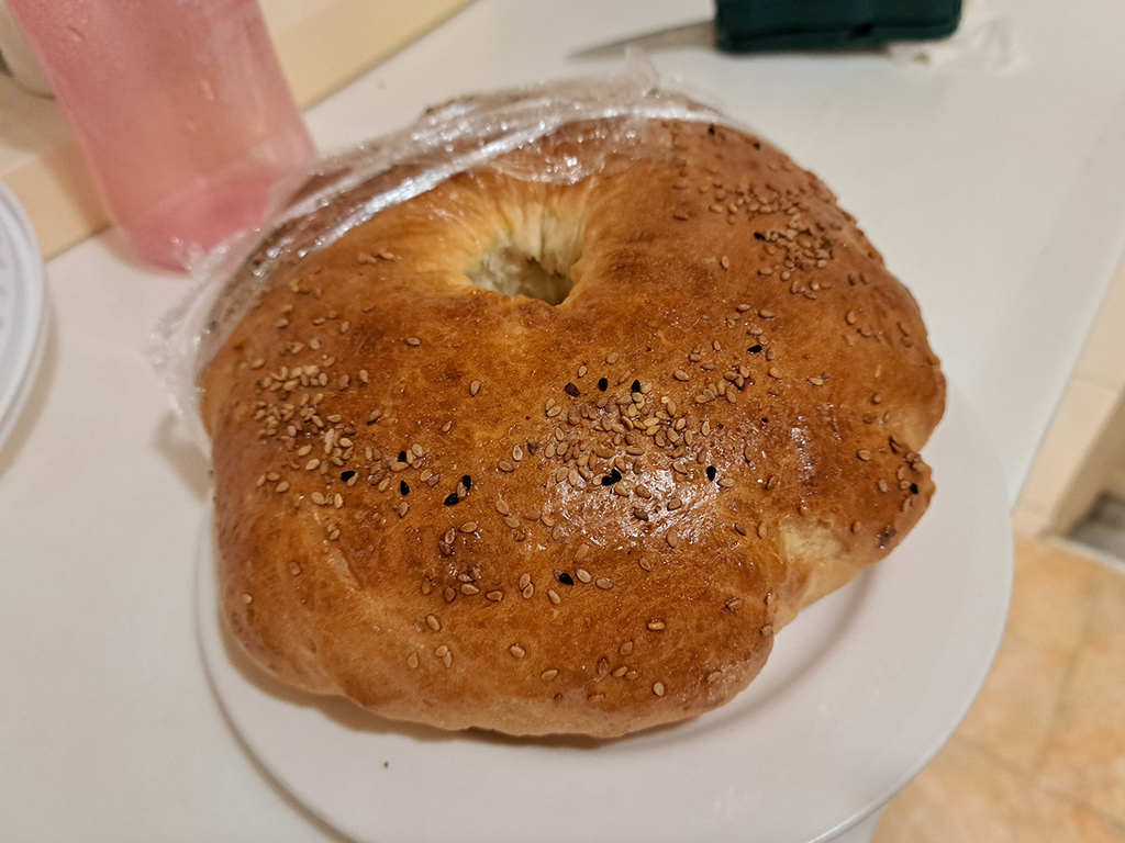 因為飯店沒有提供早餐,第2天一早8點多趁女兒還在睡,我就出來在飯店附近尋覓早餐,發現巷口這家Samarkand City,但擺在外面的麵包用保鮮膜包著,感覺上不是現烤出爐,並沒有特別吸引我。