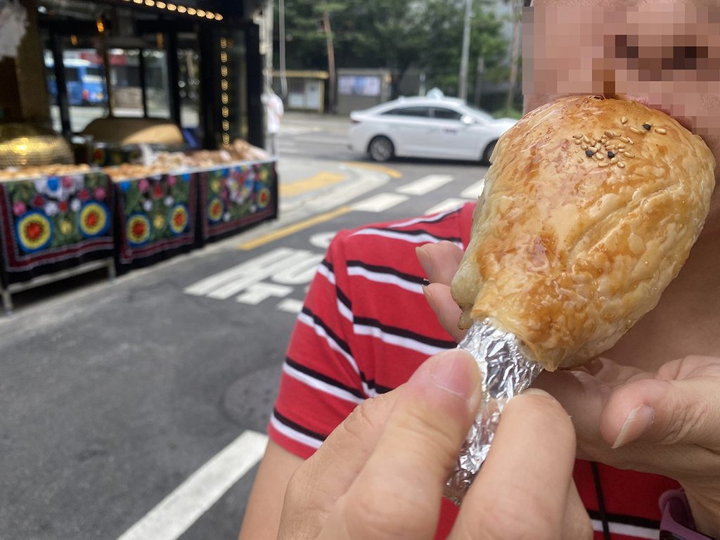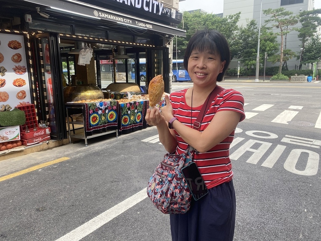 後來我對照上圖的照片去Google,才知這叫Samsa,是中亞地區(哈薩克、吉爾吉斯、塔吉克、土庫曼、烏茲別克等國)常見的街頭美味小吃,主要內餡料是羊肉和洋蔥,但韓國可能比較沒有羊肉,而改用雞肉、牛肉,或者南瓜或馬鈴薯等當季食材。