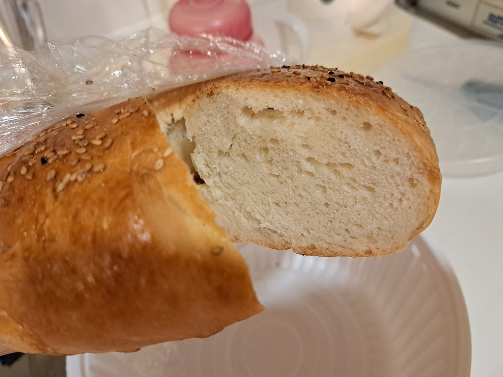 晚餐準備加熱前2天打包回來的剩菜剩湯,但剛烤好的Lepeshkas忍不住切來吃,如她說柔韌帶勁,嚼起來很香,有淡淡鹹味和香氣,令人垂涎!