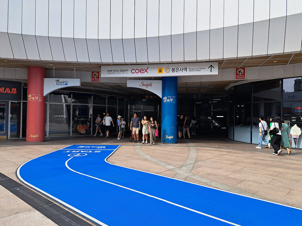 奉恩寺站和Starfield Coex Mall可以算連通的,出了地鐵站就可以看到正對面的購物中心入口了。