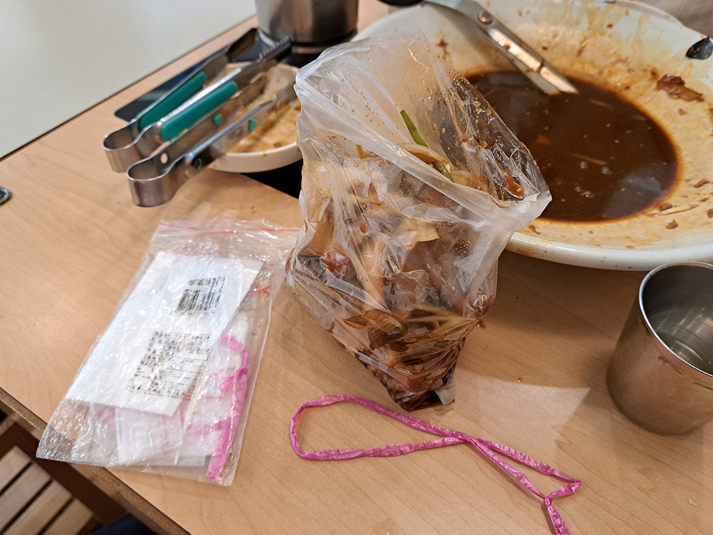 結果當然一定要打包回去了!我們回飯店附近的超市買烏龍麵加熱,就是我們的宵夜了~
