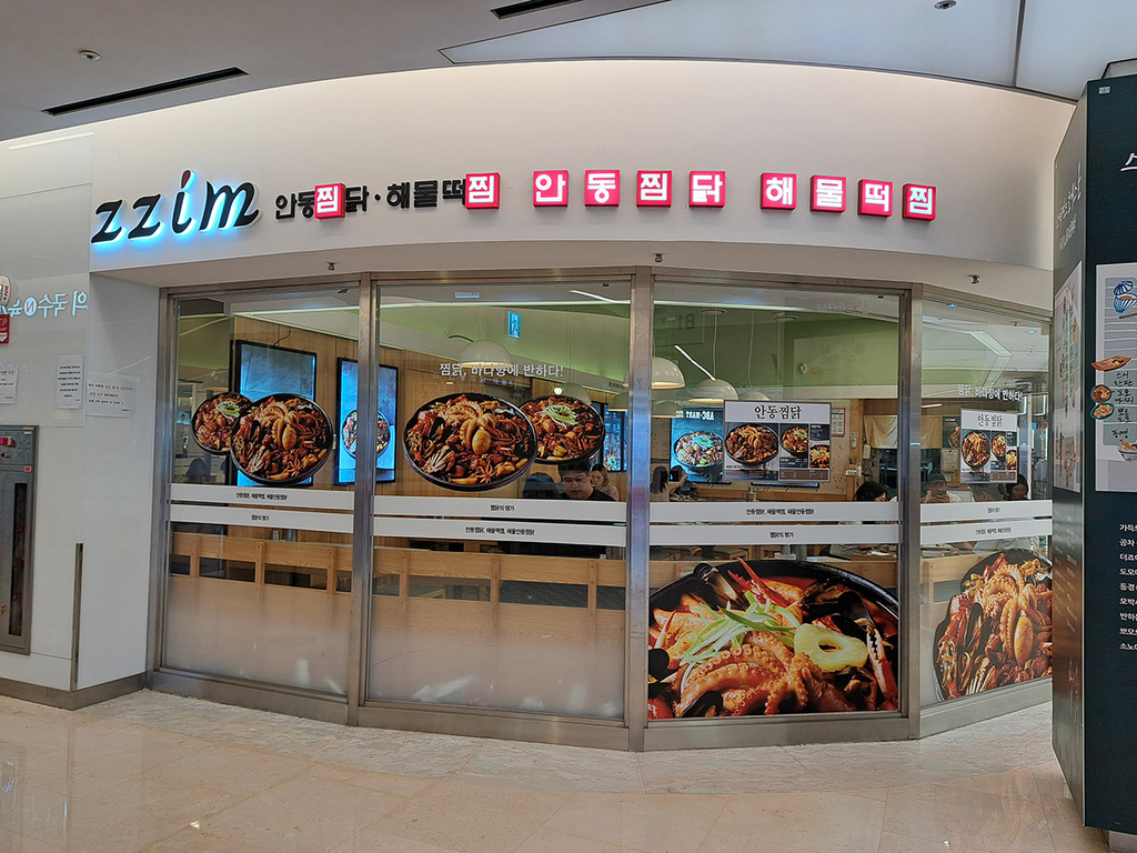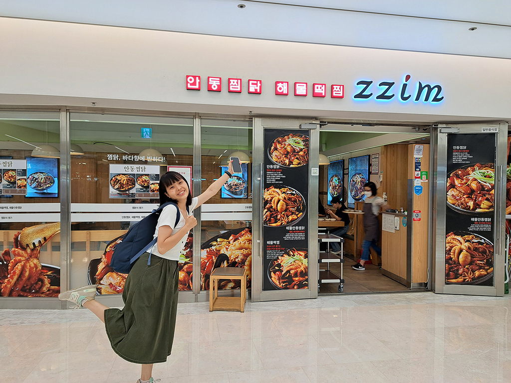 然後往前走看看還有什麼餐廳,看到這家zzim안동찜닭&해물떡찜(安東燒雞&海鮮年糕鍋)坐滿人,這時往人多的地方去應該就沒錯了!