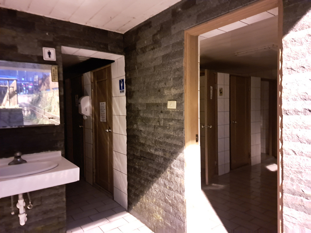 廁所外面沒有燈,但有路燈照明就還好,洗手台也還有水可以使用。