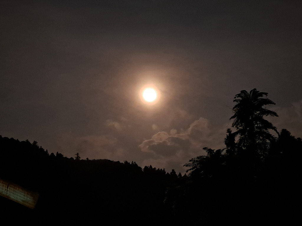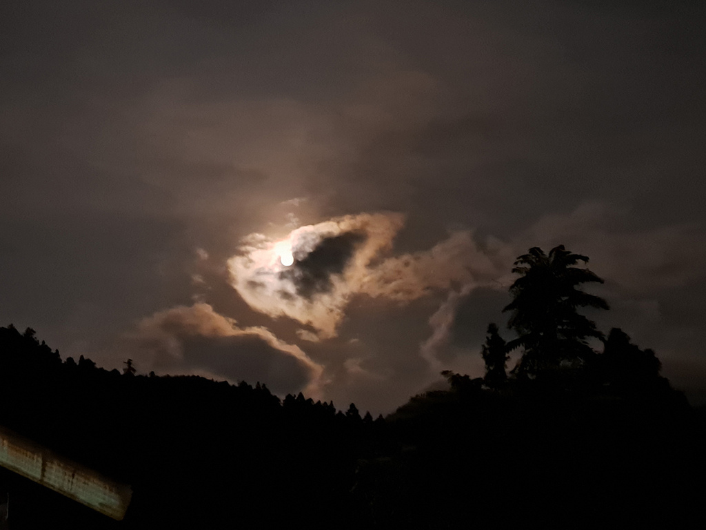 雲層還是不時遮蔽皎月,形成特殊畫面,我們把照片傳給孩子,感覺很適合放路觀,請他們發揮想像力想個文案, 但沒人理我XDD